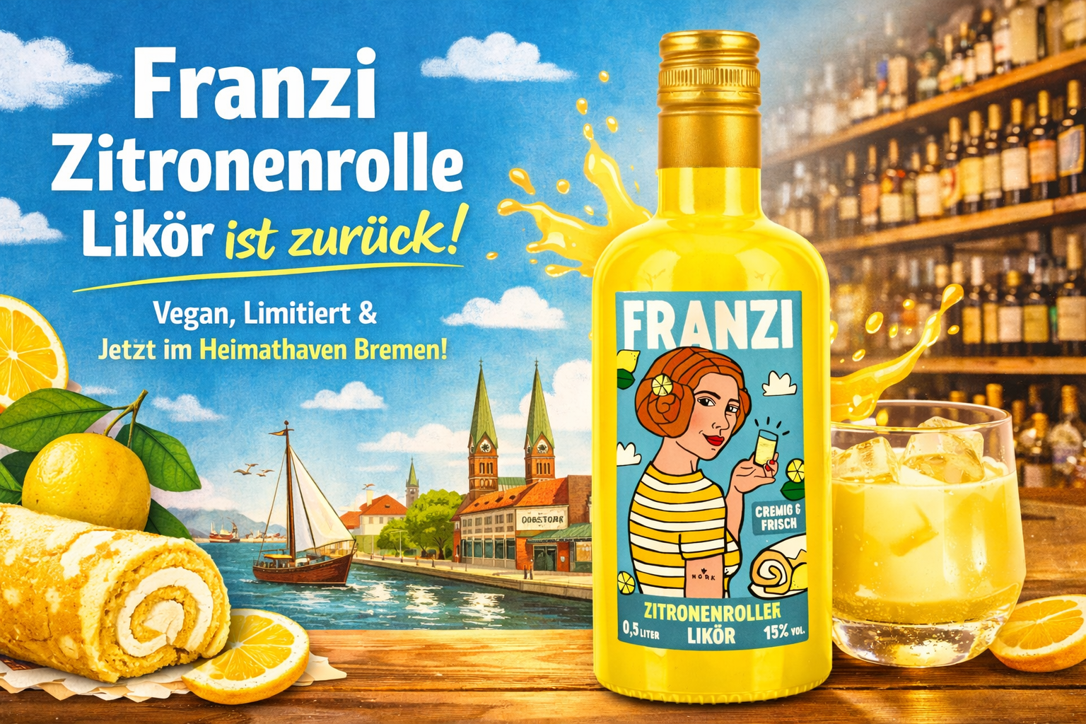 Franzi Zitronenrolle Likör ist zurück – vegan, limitiert & endlich wieder im Heimathaven Bremen